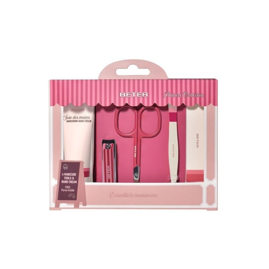 Beter Set de Manucure Plaisirs Collection 5 pcs est un kit pour le soin des mains et des ongles à la maison, conçu pour un usage quotidien et pour les voyages. Il comprend des outils de base pour une manucure complète et une crème pour les mains nourrissante.
