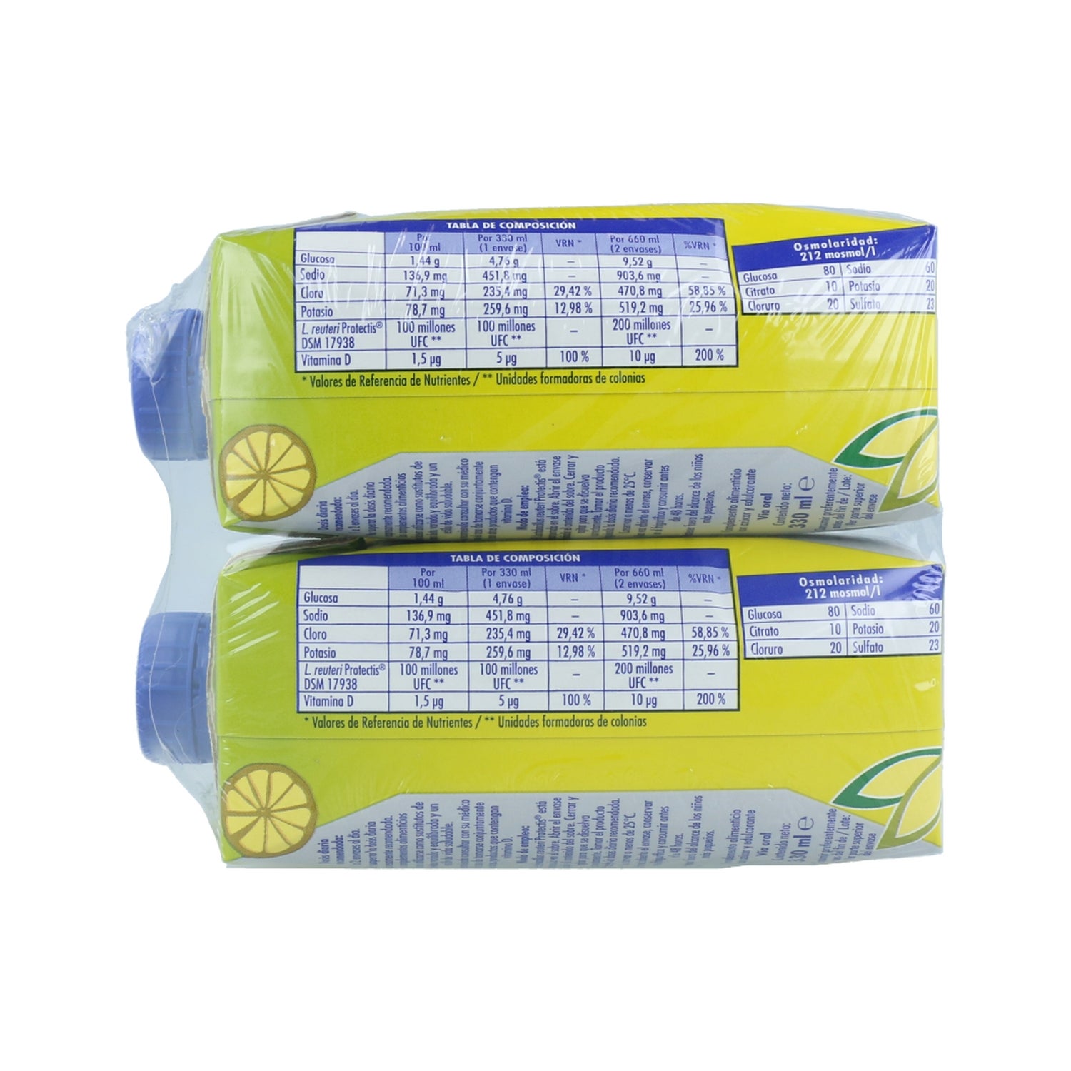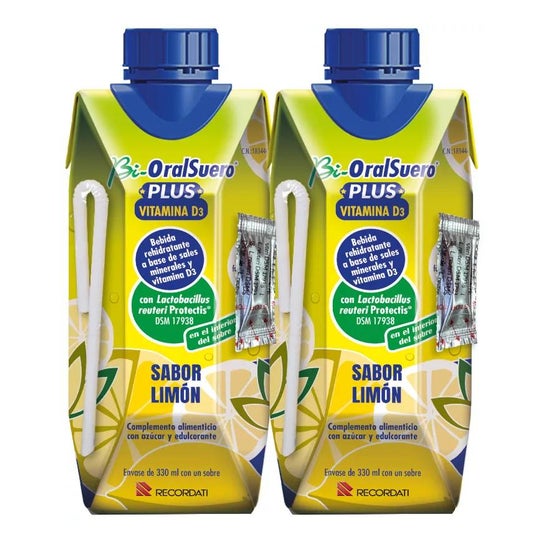 Bi-oralsuero Plus 2x330ml est une boisson réhydratante à base de sels minéraux avec lactobacillus reuteri protectis.