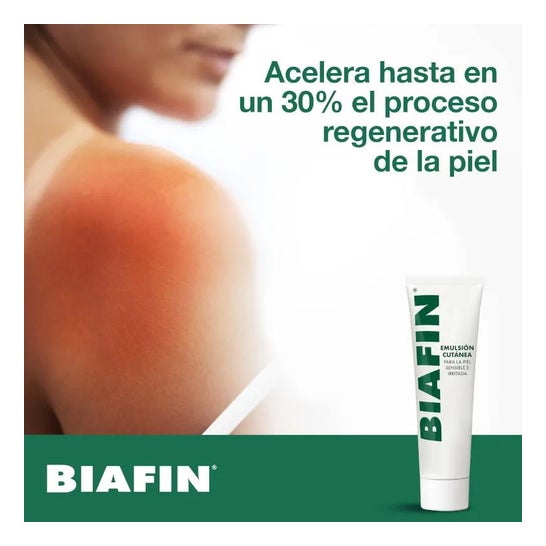 Biafin Émulsion Cutanée 50ml est conçue pour favoriser la cicatrisation des plaies cutanées non infectées, superficielles et peu étendues, telles que les coups de soleil, brûlures domestiques ou après une intervention au laser.