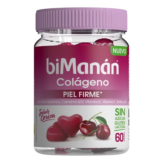 biManán Gummies Collagène Peau Ferme Cerise 60uds est un complément alimentaire qui contribue à la formation de collagène et à maintenir une peau saine.
