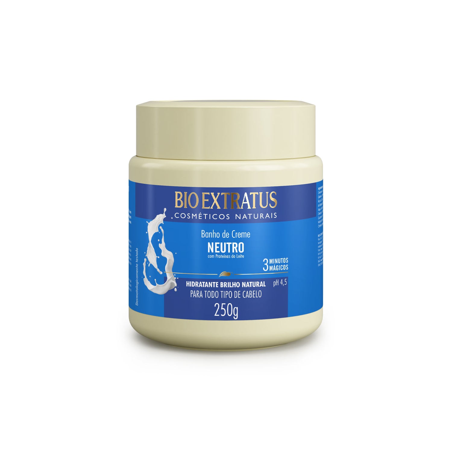 Bio Extratus Neutro Banho de Creme 250g est un traitement hydratant formulé avec des protéines de lait, qui contribuent à adoucir et protéger les cheveux.