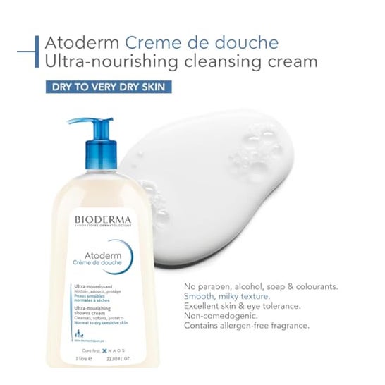 Bioderma Atoderm Crème de Douche Ultra-Nourrissante 1L est une crème de douche nourrissante et protectrice spécialement formulée pour les peaux sensibles, sèches et très sèches . Idéale pour le visage et le corps des bébés, des enfants et des adultes. Nettoie la peau en profondeur tout en la laissant douce et souple