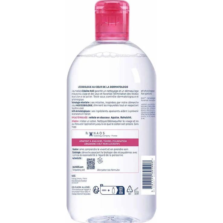 Le produit est l'EAU MICELLAIRE CRÉALINE H2O. Cette formule est conçue pour nettoyer et démaquiller ton visage et tes yeux de manière efficace, en prenant soin de la sensibilité des peaux les plus délicates.