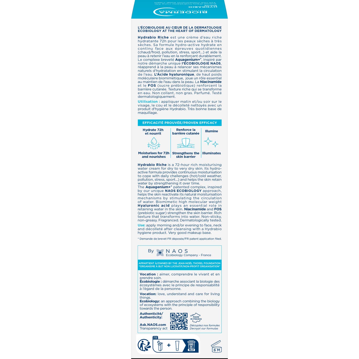 Bioderma Hydrabio Riche 40ml est une crème aqueuse qui aide à renforcer les mécanismes naturels d’hydratation et à maintenir l’eau au cœur de la peau.