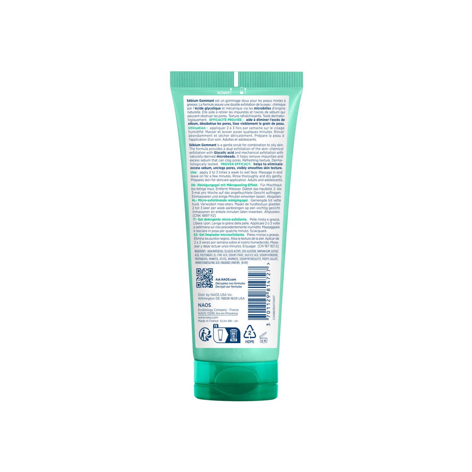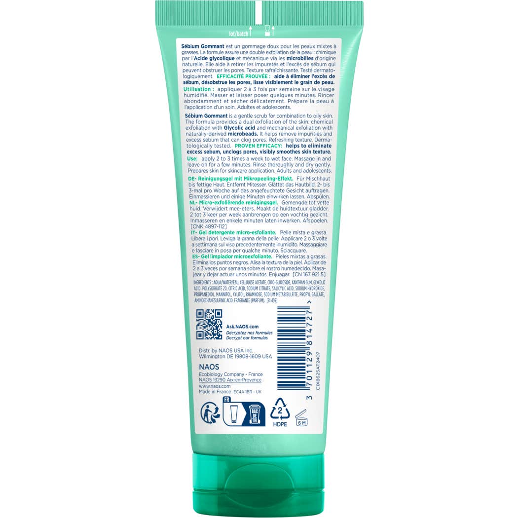 Gel purifiant exfoliant pour peaux grasses déshydratées