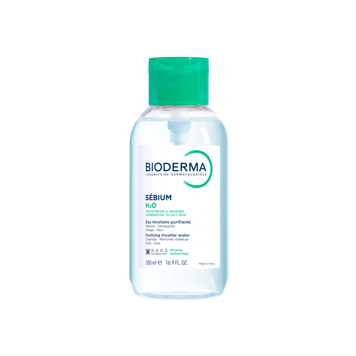 Bioderma Sébium H2o Eau Micellaire Purifiante Flacon Pompe 500ml est une eau micellaire spécialement formulée pour les peaux mixtes à grasses. Elle respecte la composition naturelle de la peau et nettoie en douceur tout en démaquillant sans dessécher.
