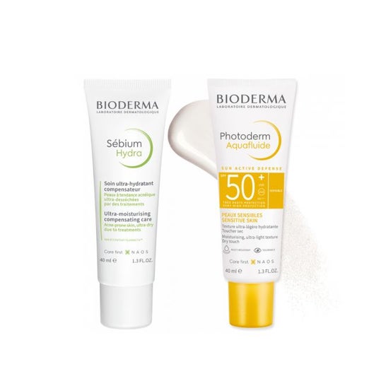 Bioderma Sébium Hydra 40ml + Photoderm Aquafluide Spf50+ 50ml est un pack promotionnel conçu pour être utilisé pendant des traitements qui peuvent causer sécheresse de la peau. Cet ensemble comprend deux produits clés qui aident à maintenir l'hydratation et la protection solaire.