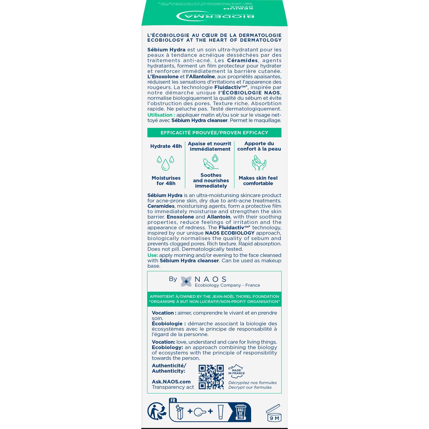 Bioderma Sébium Hydra Soin Compensateur Ultra Hydratant 48h 40ml est conçu pour aider à compenser la sécheresse provoquée par les soins cutanés agressifs, offrant une sensation de confort durable.