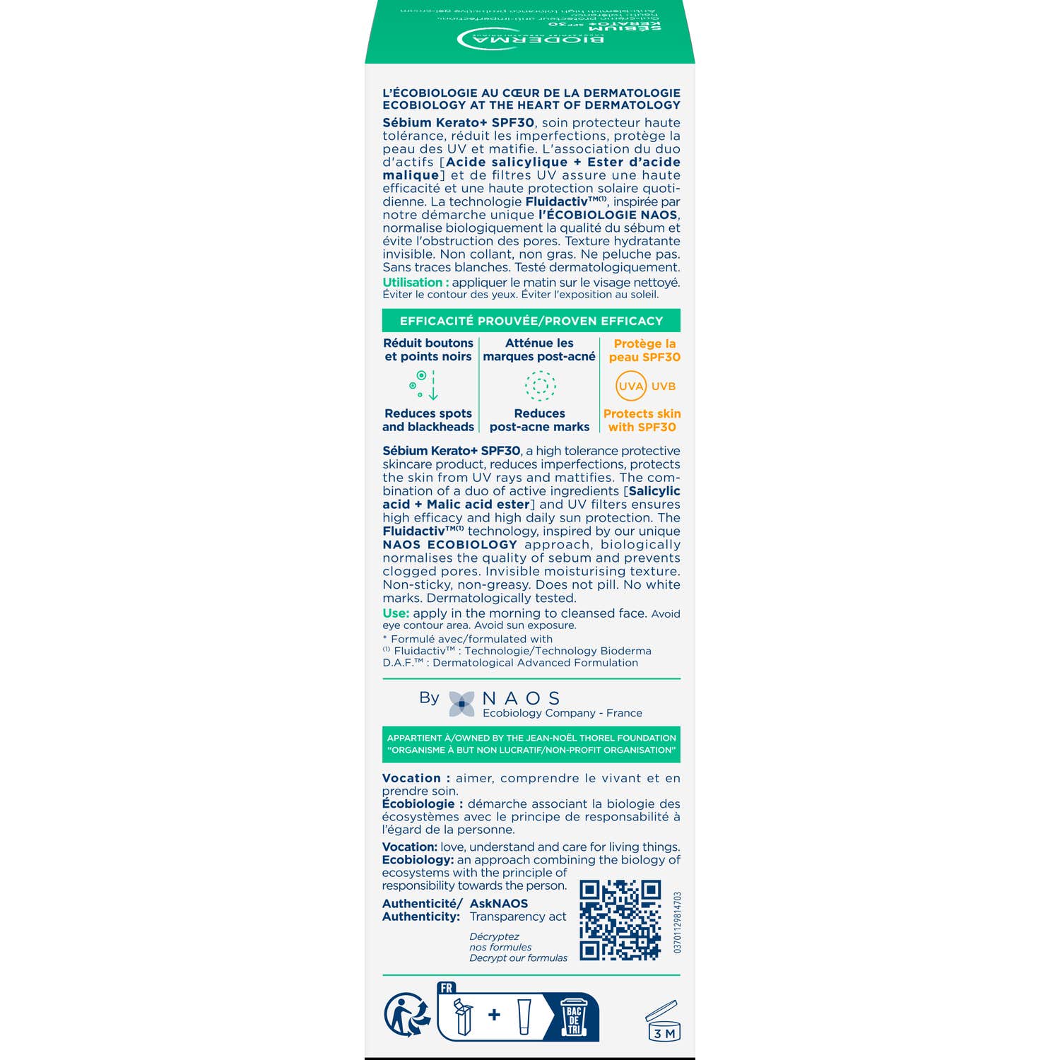 Grâce à l’association d’acide salicylique et d’ester d’acide malique, il aide à réduire les imperfections, à désobstruer les pores et à améliorer visiblement la qualité de la peau. Sa protection SPF 30 protège efficacement des UV, limitant l’apparition de marques et l’aggravation des imperfections.