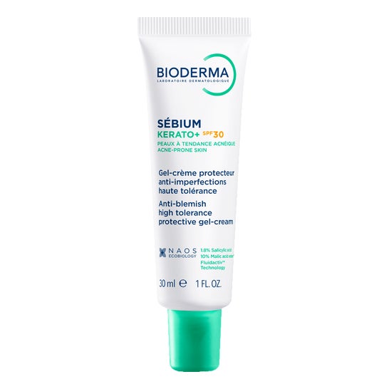 Bioderma Sébium Kerato+ SPF30 30ml est un gel-crème protecteur anti-imperfections qui agit à la fois sur les boutons, les points noirs et les marques post-acné.