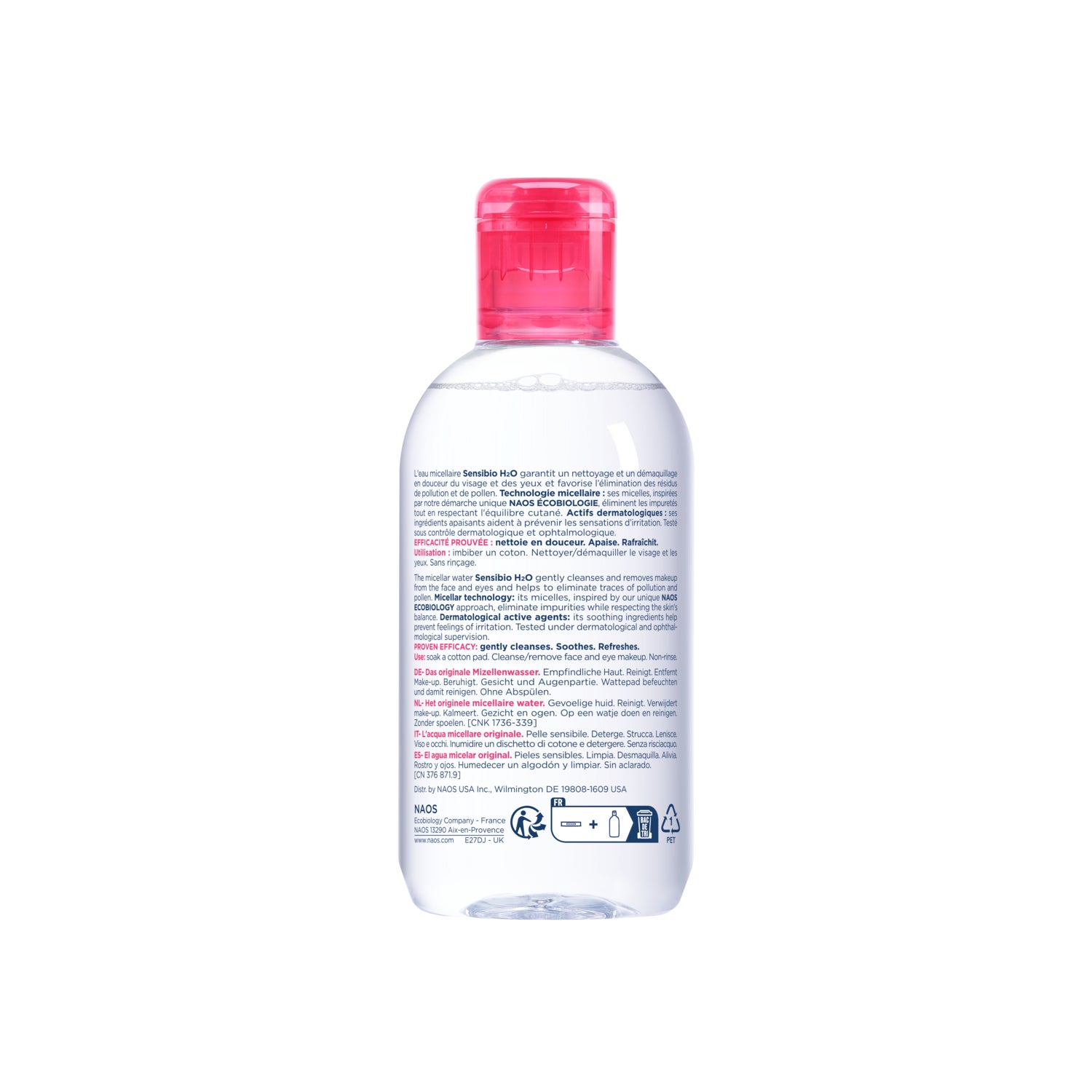 Bioderma Sensibio H2O L'Eau Micellaire Originale 250ml est une eau micellaire démaquillante qui nettoie la peau en profondeur, en éliminant efficacement le maquillage et les impuretés tout en respectant l’équilibre cutané.