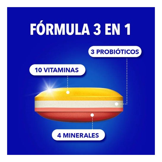 Bion 3 Energie Continue 30 Comprimés est un complément alimentaire formulé avec 9 vitamines, 2 minéraux et 3 ferments Tri-Bion® brevetés, indiqués pour le maintien du bien-être et le dynamisme au quotidien. Les vitamines des groupes A, B, C, D et E aident le système immunitaire à fonctionner, soutiennent le métabolisme énergétique normal et protègent les cellules contre les dommages oxydatifs, tandis que les minéraux tels que le zinc aident à réduire les symptômes de fatigue.