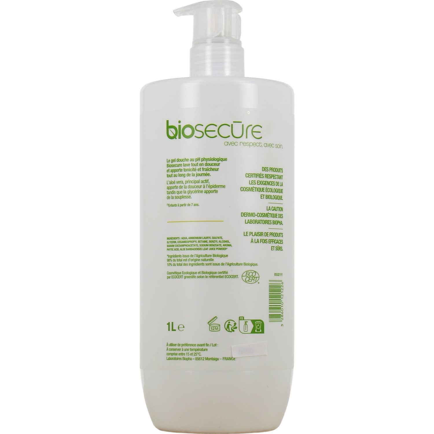 Le gel douche présente un pH physiologique, ce qui le rend encore plus adapté aux soins de la peau. Il est certifié par Cosmebio et Ecocert, garantissant sa qualité et son engagement envers l'environnement. Fabriqué en France, 98% des ingrédients sont d'origine naturelle et 10% proviennent de l'agriculture biologique.