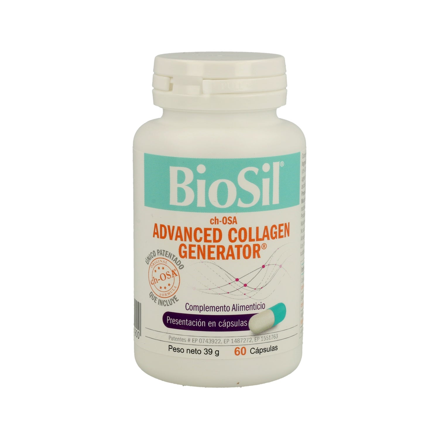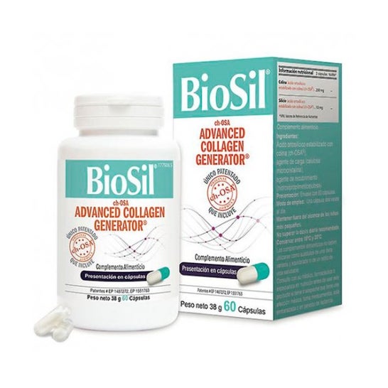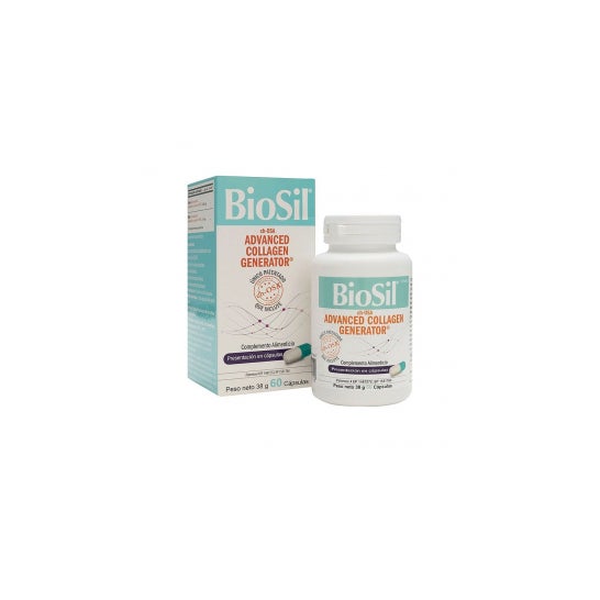 Advanced Collagen Generator capsules de la marque Biosil à l'efficacité cliniquement prouvée, qui aide à maintenir la santé de la peau, des cheveux, des ongles, des os et des articulations, en activant les propres cellules du corps qui génèrent le collagène, ce qui aide à ralentir le processus de vieillissement et à augmenter l'élasticité de la peau.
