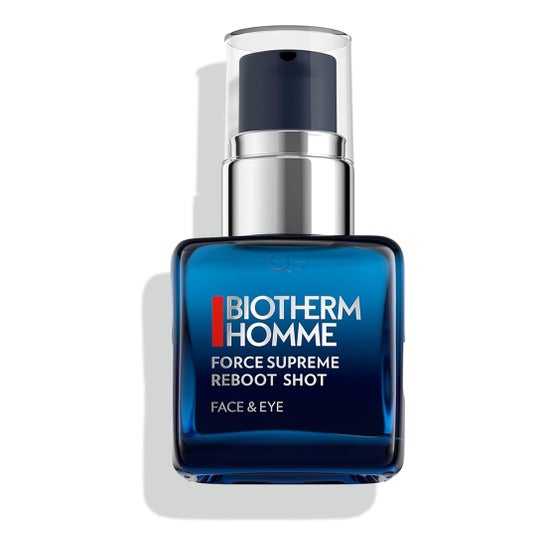 Biotherm Homme Force Supreme Reboot Shot est un sérum de 30 ml qui se concentre sur revitaliser la peau masculine, combattant dix signes visibles de fatigue sur le visage et le contour des yeux. Ce traitement intensif contient un 12 % de vitamine C pure, formulé spécifiquement pour s'adapter aux besoins de la peau de l'homme.
