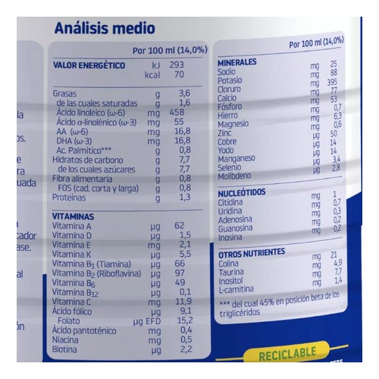 De plus, le lait apporte des nutriments qui garantissent le bon développement de l'enfant, étant une bonne aide pendant sa croissance. Il est également recommandé pour les bébés allaités à partir du sixième mois de vie ou sur recommandation médicale. Une fois ouvert, il est conseillé de le conserver dans un endroit frais et sec.