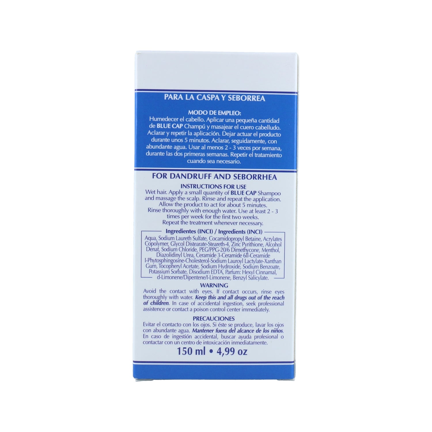 Shampooing indiqué pour le soin du cuir chevelu affecté par les pellicules, la séborrhée sèche ou la séborrhée grasse. Aide à réduire les démangeaisons et la desquamation, et favorise également la croissance des cheveux. Il peut être complété par la lotion Blue Cap pour la séborrhée sèche, l'utilisation mixte de la lotion et du shampooing. Et, pour la séborrhée grasse, l'application du shampooing est suffisante.