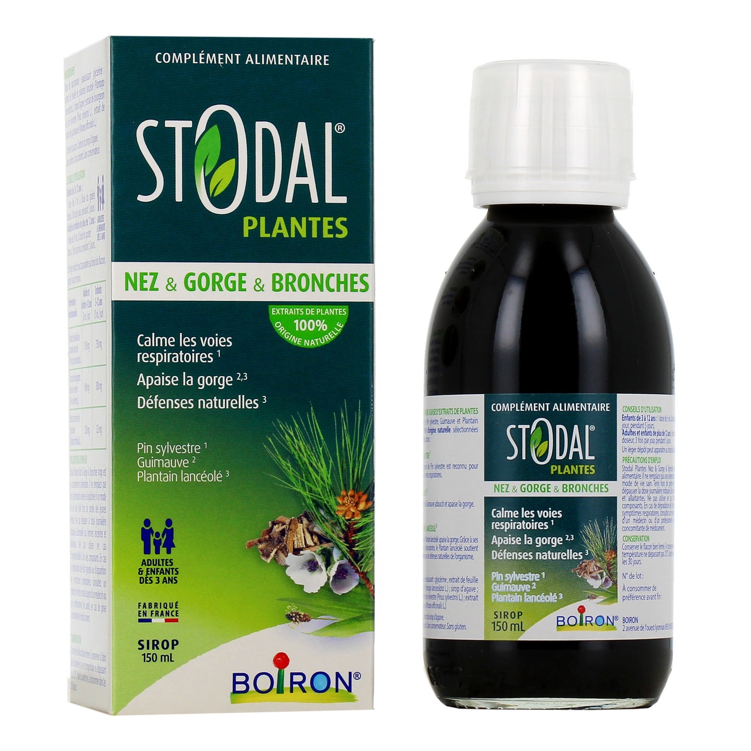 Boiron Stodal Plantes Nez Gorge & Bronches Sirop 150 ml est un complément alimentaire élaboré à partir d'extraits de plantes. Ce sirop combine les bienfaits de :