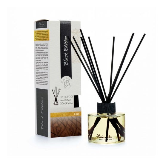 Désodorisant d'intérieur au format mikado, contenant un délicat et agréable parfum boisé et sucré, idéal pour parfumer toute pièce fermée. Il contient des notes de tête de cardamome, de rose sauvage et de poivre, des notes de cœur de bois de santal, de vétiver, de cade, de oud et de fumée et des notes de fond d'ambre, de vanille et de musc. Les bâtonnets en rotin naturel aident à répartir uniformément le parfum. Durée : environ 10 semaines.