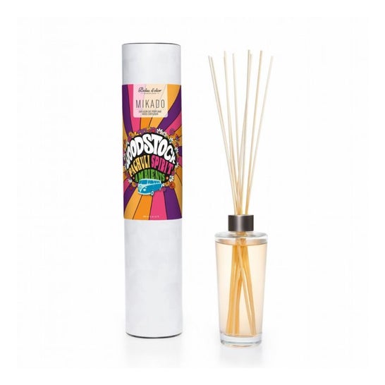 Diffuseur pour la maison au format mikado, qui contient une délicate et agréable fragrance boisée et florale, idéale pour parfumer tout espace fermé.