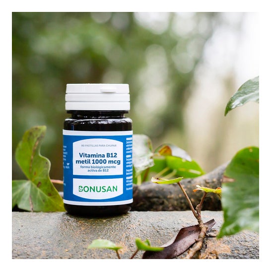 Bonusan Vitamine B12 Méthyl 1000mcg 90comp est un complément alimentaire à base de vitamine B12 dans sa variante active méthylcobalamine. Il contribue au métabolisme énergétique normal et à maintenir une bonne fonction psychologique.