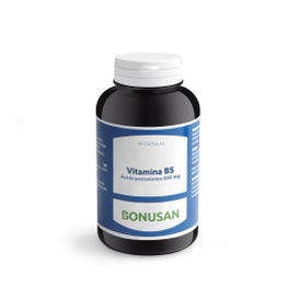 Bonusan Vitamine B5 Acide Pantothénique 500mg 90caps est un complément alimentaire qui aide à réduire la fatigue et l'épuisement, en plus de contribuer au métabolisme énergétique normal.