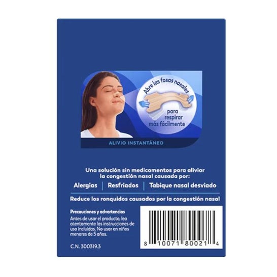 Les bandelettes nasales sont des bandes adhésives qui agissent comme un dilatateur nasal et contribuent à écarter les narines pour favoriser la respiration. Leur utilisation est recommandée lorsque le nez est bouché et qu'il provoque également des ronflements et troubles du sommeil.