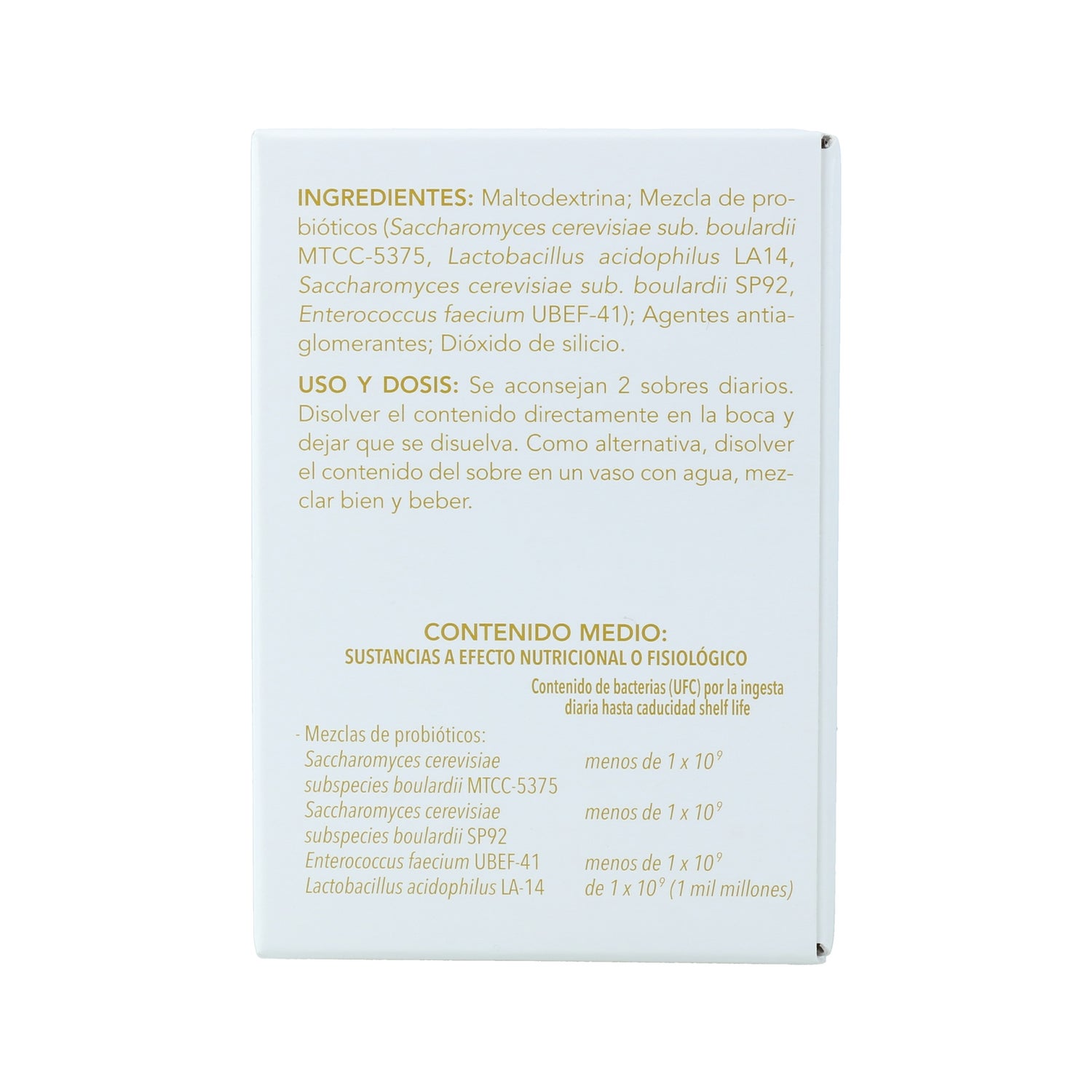 Complément alimentaire en gélules spécialement conçu pour aider à rétablir l'équilibre de la flore intestinale et favoriser l'assimilation et la production de vitamines B, grâce à sa composition à base de ferments lactiques de principes actifs naturels, ce qui permet son utilisation par les personnes intolérantes au lactose et aux œufs.