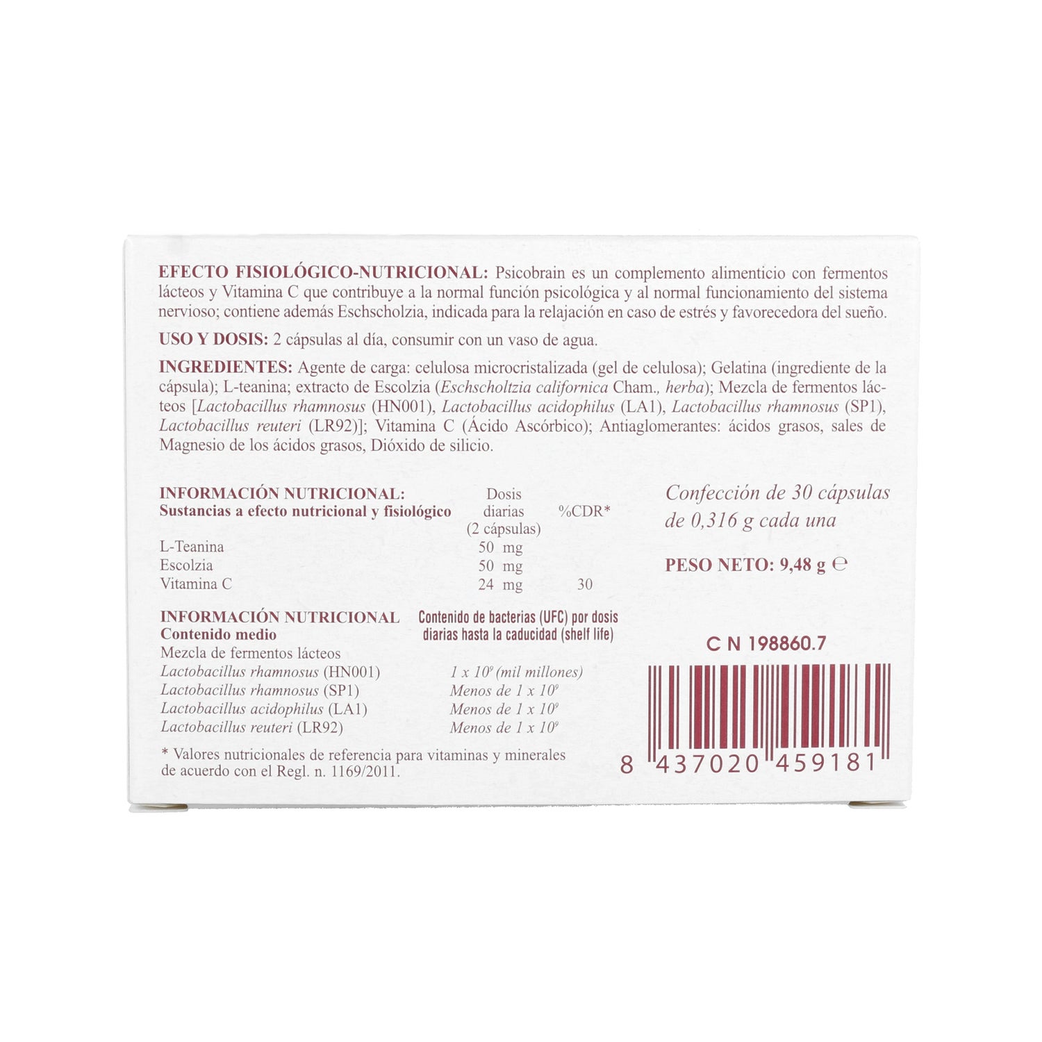 Bromatech Psicobrain 30caps est un complément alimentaire à base de pavot de Californie, vitamine C et L-théanine qui aide à maintenir la fonction psychologique normale.