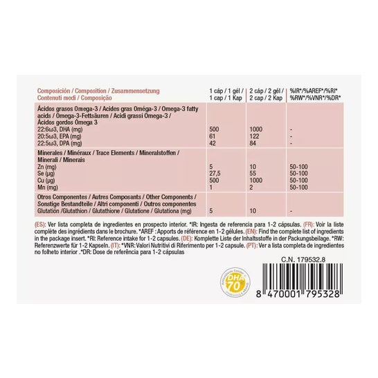 Complément alimentaire indiqué pour compléter les besoins quotidiens en acides gras essentiels de la famille Omega-3 et du groupe de minéraux inclus.