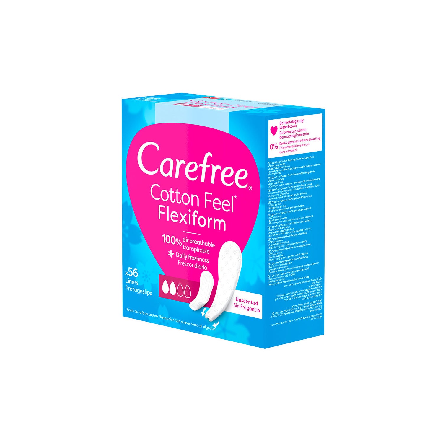 Boîte de 56 protège-slips respirants fabriqués dans une matière souple et absorbante, qui facilitent la collecte des pertes vaginales. Sa conception confortable et fine s'adapte à la culotte ou au string sans gêner ni entraver le mouvement. Ils n'irritent pas la zone intime et conviennent aux peaux sensibles et délicates.