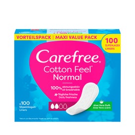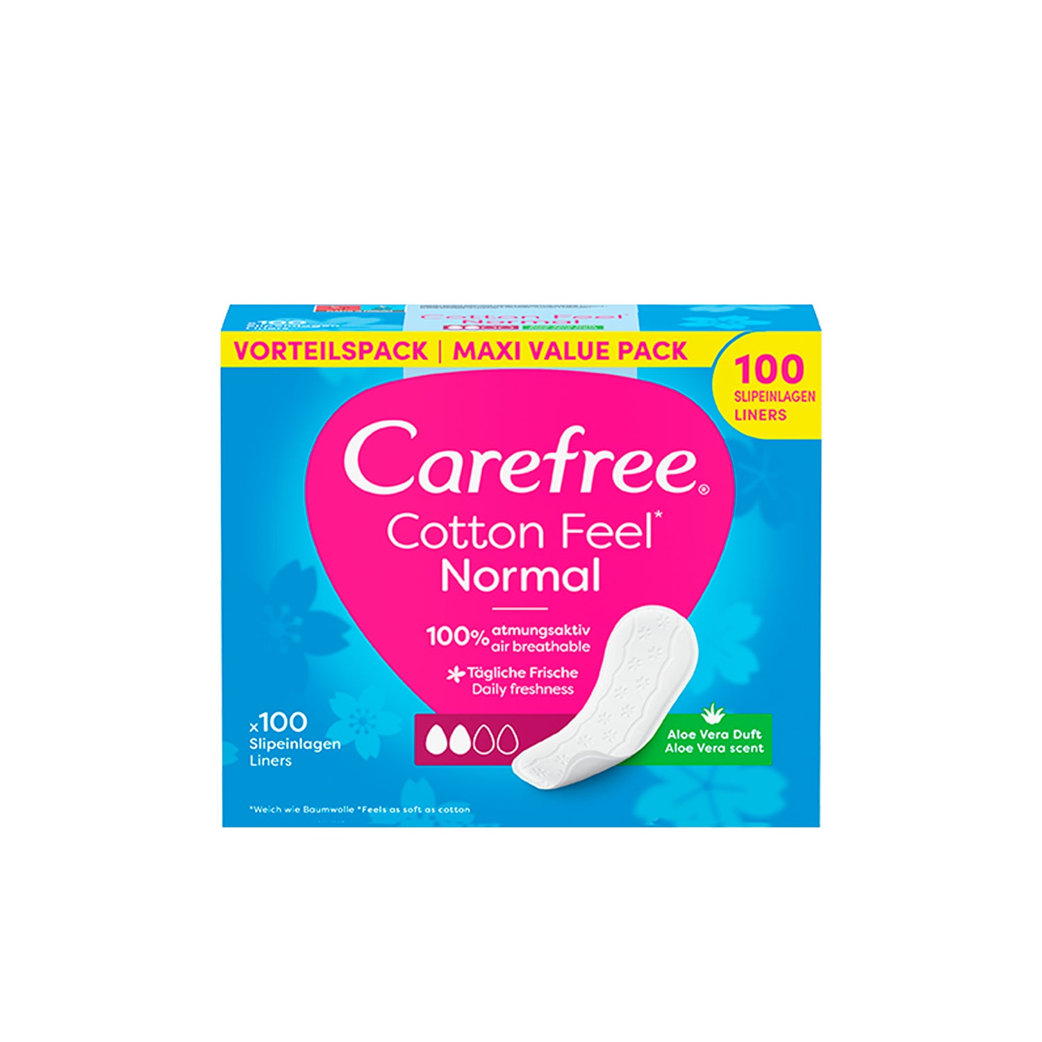 Carefree Cotton Feel Normal Serviettes Quotidiennes Aloe Vera 100 Unités sont des produits conçus pour offrir une protection quotidienne et discrète. Ces serviettes sont fabriquées avec un 100% de matériaux respirants qui favorisent la circulation de l'air, contribuant à une sensation de fraîcheur prolongée.