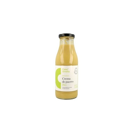 Crème de poireaux 100% naturelle fabriquée à la main. Avec des ingrédients issus de l'agriculture biologique locale, sans produits chimiques. Les poireaux contiennent de l'allicine, qui a une action antiseptique, antibactérienne et antibiotique et contribue à renforcer le système immunitaire. Il ne contient ni lactose, ni gluten, ni sucres et est certifié biologique. Casa Amella est une entreprise familiale de Barcelone qui produit des aliments végétaliens et biologiques depuis 2002.