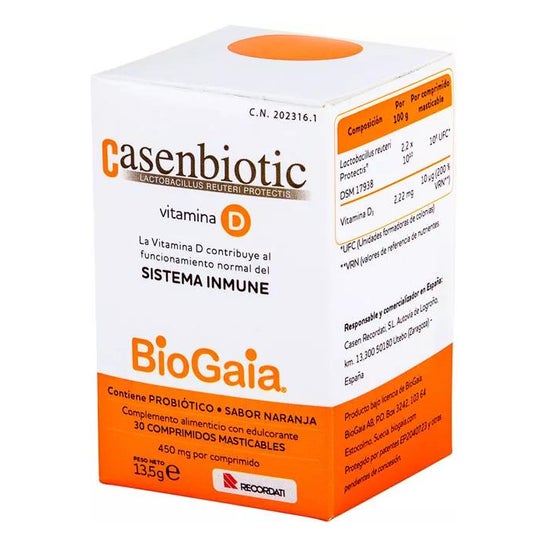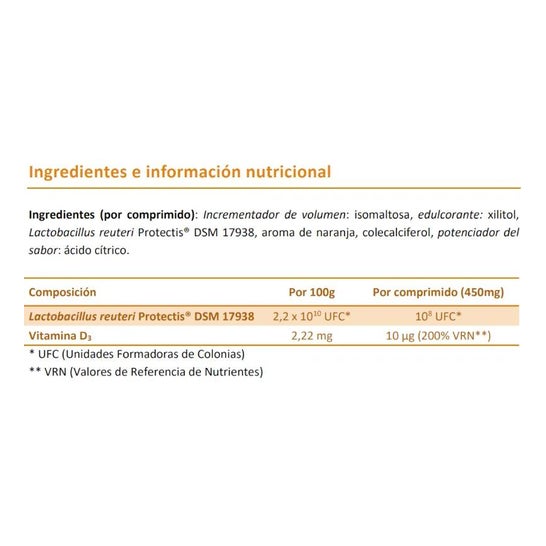 Complément alimentaire sous forme de comprimés à mâcher au goût d'orange, à base de vitamine D, qui contribue au bon maintien des os et des dents. Il améliore également l'absorption du calcium dans les os et contribue à maintenir un taux normal de calcium dans le sang.