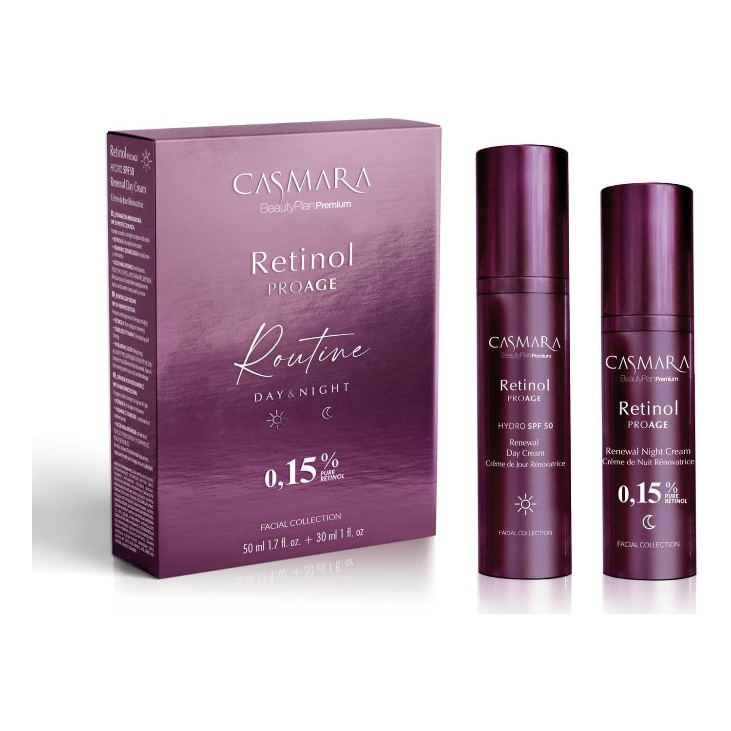 Casmara Pack Retinol ProAge Routine Jour & Nuit 0,15% 50ml + 30ml est un ensemble conçu pour offrir une routine intensive de rajeunissement. Ce pack comprend :