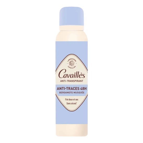 Cavaillès Déodorant Anti-Transpirant Anti-Traces 48h Bergamote Spray 150 ml régule même la transpiration la plus intense pendant 48 heures. Apporte la douceur d'un soin 100% sans alcool grâce à sa formule enrichie en agents hydratants et apaisants.