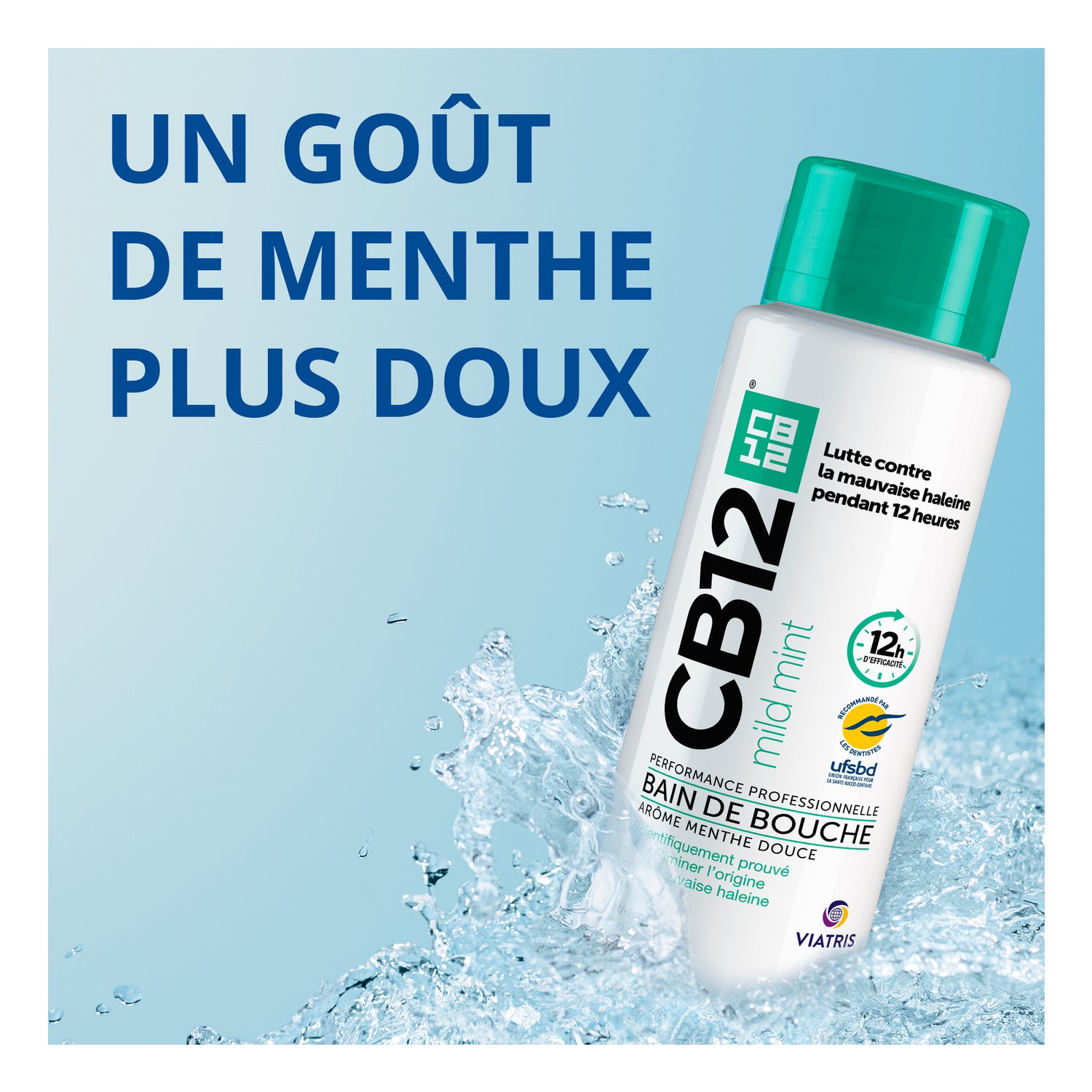 Le bain de bouche CB12 assure jusqu’à 12 heures d’haleine fraîche, grâce à sa formule brevetée à base de chlorhexidine et d’acétate de zinc, scientifiquement prouvée pour neutraliser la cause de la mauvaise haleine.