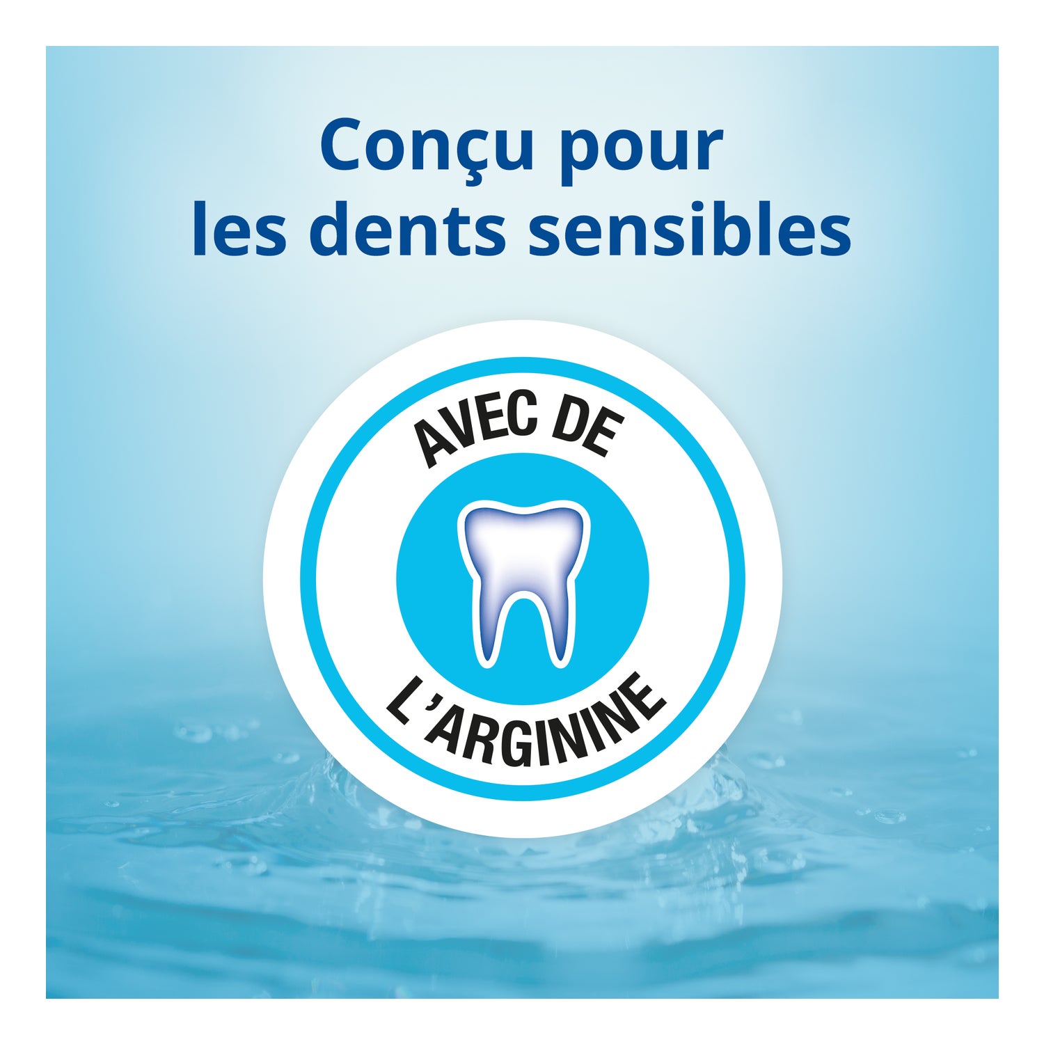 Recommandé par les dentistes de l’UFSBD, il aide à renforcer l’émail et à protéger contre les caries, tout en réduisant la sensibilité dentaire grâce à l’arginine et au fluorure de sodium.