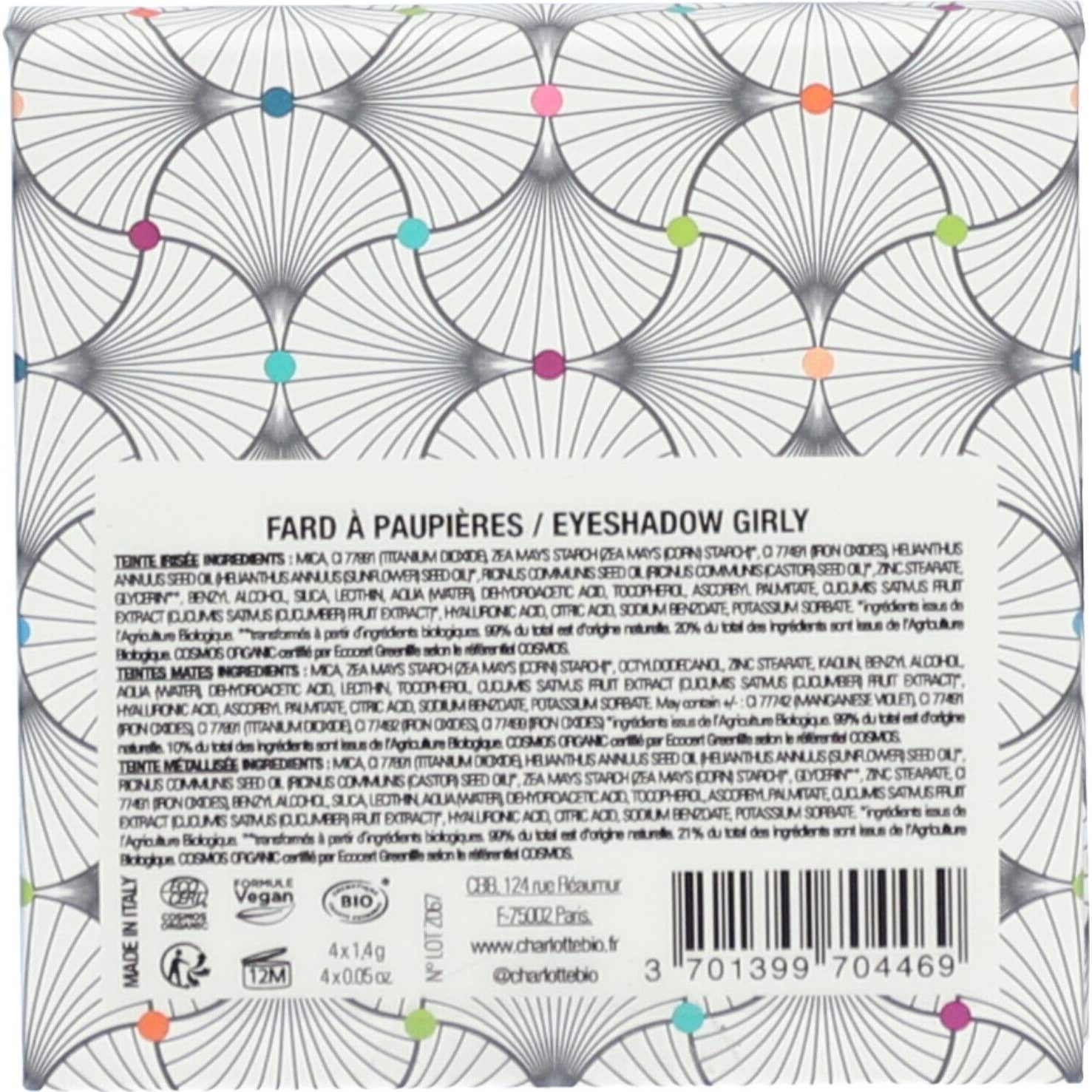 Charlotte Bio Palette Ombres à Paupières Girly 4x1.4g est un produit phare dans le domaine du maquillage, conçu pour offrir une expérience d'application simple et durable. Cette palette est certifiée bio et végane, garantissant que sa composition est respectueuse de l'environnement et sans cruauté envers les animaux.