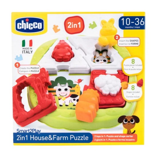 Puzzle agricole pour bébés qui aide à développer la coordination et le contrôle des membres supérieurs, la logique et la vision. Il comporte un cadre, un carton avant et arrière et huit pièces à assembler. Il favorise le jeu et la distraction tout en éduquant les fonctions de mouvement et de contrôle du corps.