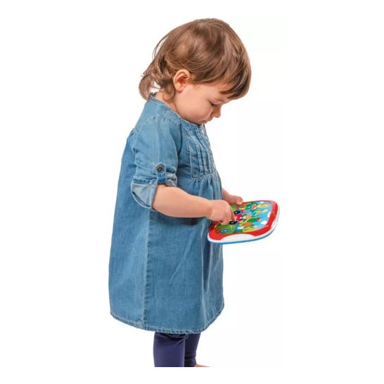 Tablette interactive avec 9 boutons qui reproduisent des sons de voitures et d'animaux. Contribue à l'apprentissage et au plaisir des plus jeunes membres de la famille tout en favorisant le développement de l'association logique. Il possède 2 niveaux de volume et sa taille ergonomique est idéale pour les bébés à partir de 12 mois.