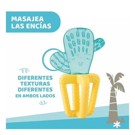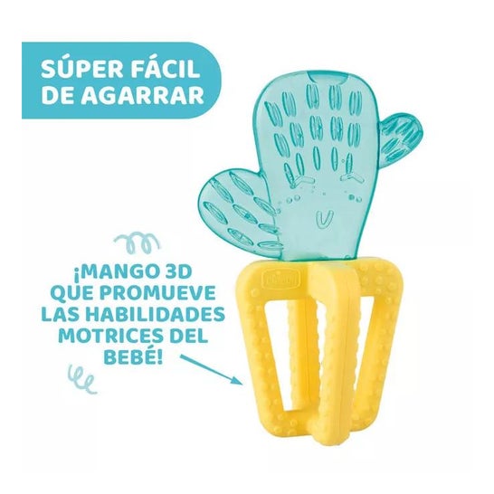 Longeur avec un design de cactus et un effet de refroidissement. La conception comporte une zone humide, qui atteint n'importe quelle partie de la bouche de bébé et peut être placée dans le réfrigérateur pour un soulagement supplémentaire. Il est doté d'une poignée 3D, ce qui le rend facile à tenir.