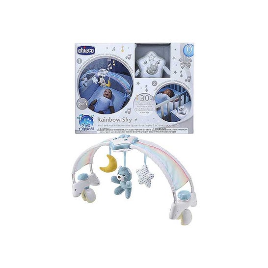 Jouet évolutif pour nouveau-nés composé d'un nœud avec des ours en peluche, qui peut être facilement fixé au berceau. Il favorise le calme et aide à détendre l'enfant grâce à la musique classique. Il dispose d'une minuterie qui vous permet de contrôler l'arrêt. Il dispose d'un bouton pour régler le volume.