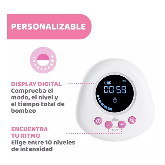 Chicco Tire-lait Électrique Double 1ud est un dispositif électrique conçu pour faciliter l'extraction du lait, optimisant le temps et l'efficacité. Ce modèle d'extraction double permet de recueillir du lait simultanément des deux seins, ce qui rend le processus plus rapide et efficace.