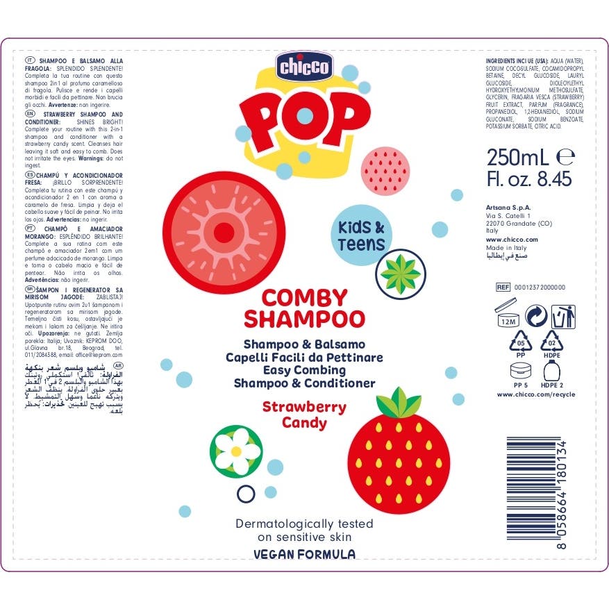 Chicco Pop Comby Shampoo & Après-shampooing Fraise 250 ml est un produit conçu spécifiquement pour les enfants et les pré-adolescents. Ce shampooing et après-shampooing 2 en 1 permet de profiter d'un cheveux qui est non seulement facile à coiffer, mais qui reste également parfumé et doux.