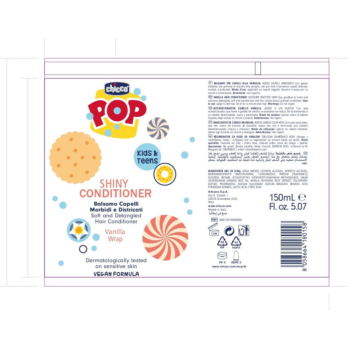 Chicco Pop Shiny Après-shampooing Vanille 150 ml est la solution idéale pour compléter la routine de soin capillaire des plus jeunes et ainsi dire adieu aux nœuds. Cet après-shampooing est spécialement conçu pour les enfants et les pré-adolescents, offrant des cheveux doux et un agréable parfum de cookie à la vanille.