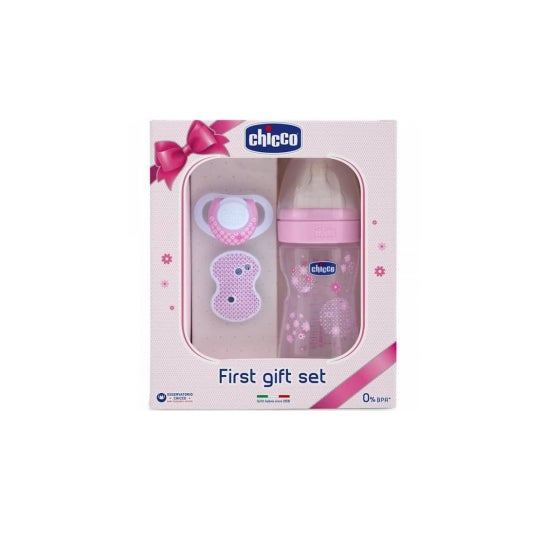 Il est conçu pour être offert à un nouveau-né, car il comprend un biberon bien-être doté d'une tétine qui aide à protéger le petit des coliques, du reflux et des irritations, ainsi qu'une tétine munie d'une attache avec une chaîne pour éviter qu'elle ne tombe. *La couleur et le design du produit peuvent varier en fonction de la disponibilité.