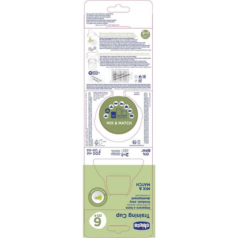 Chicco a développé ce produit en collaboration avec des experts en orthophonie et pédiatrie, assurant une transition naturelle et simple de l'allaitement à la boisson indépendante.