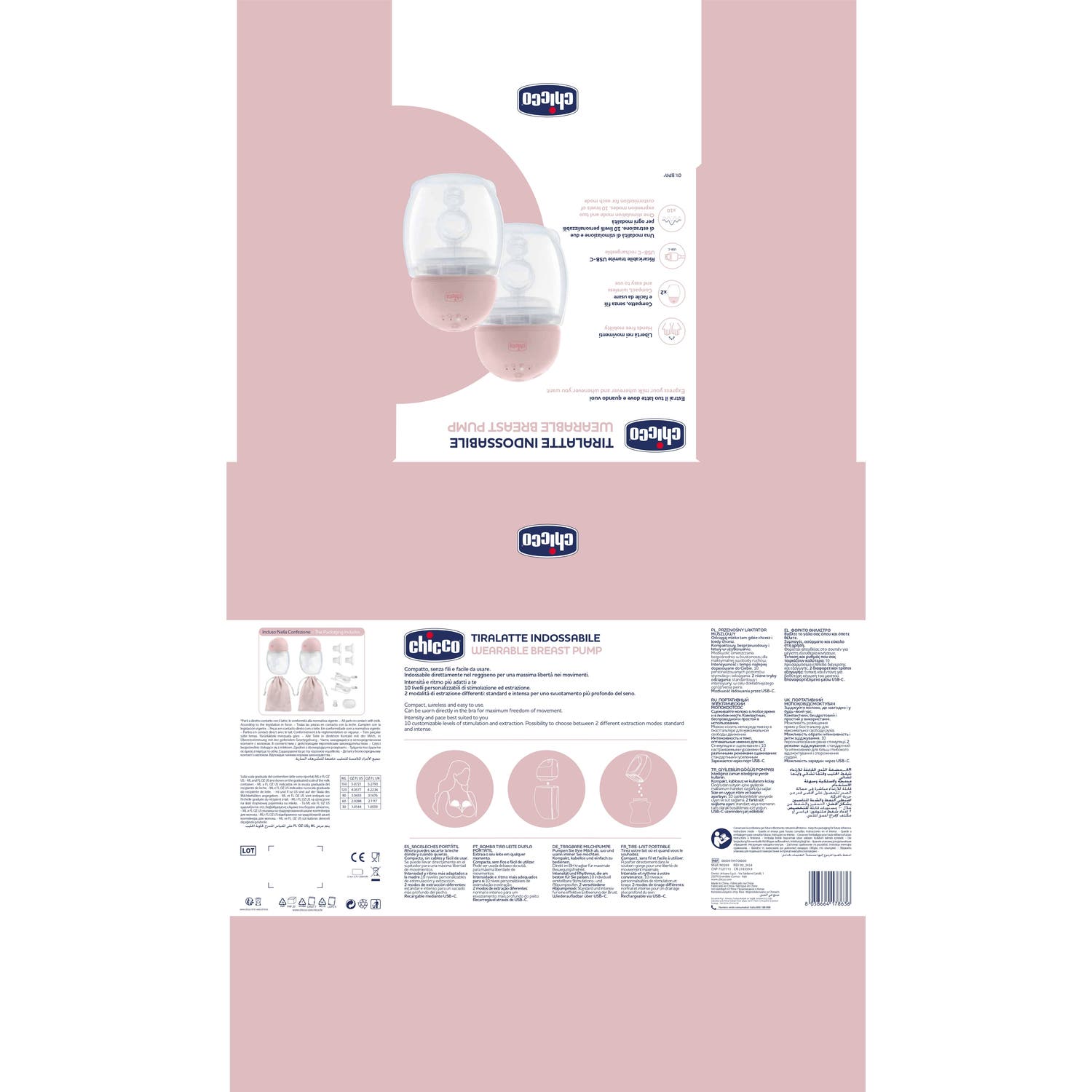 Le Tire-lait Chicco est facile à utiliser, à nettoyer et à assembler, composé de seulement six pièces. De plus, il est équipé d'une batterie rechargeable via un câble USB-C, ce qui ajoute un plus de commodité pour son utilisation quotidienne.