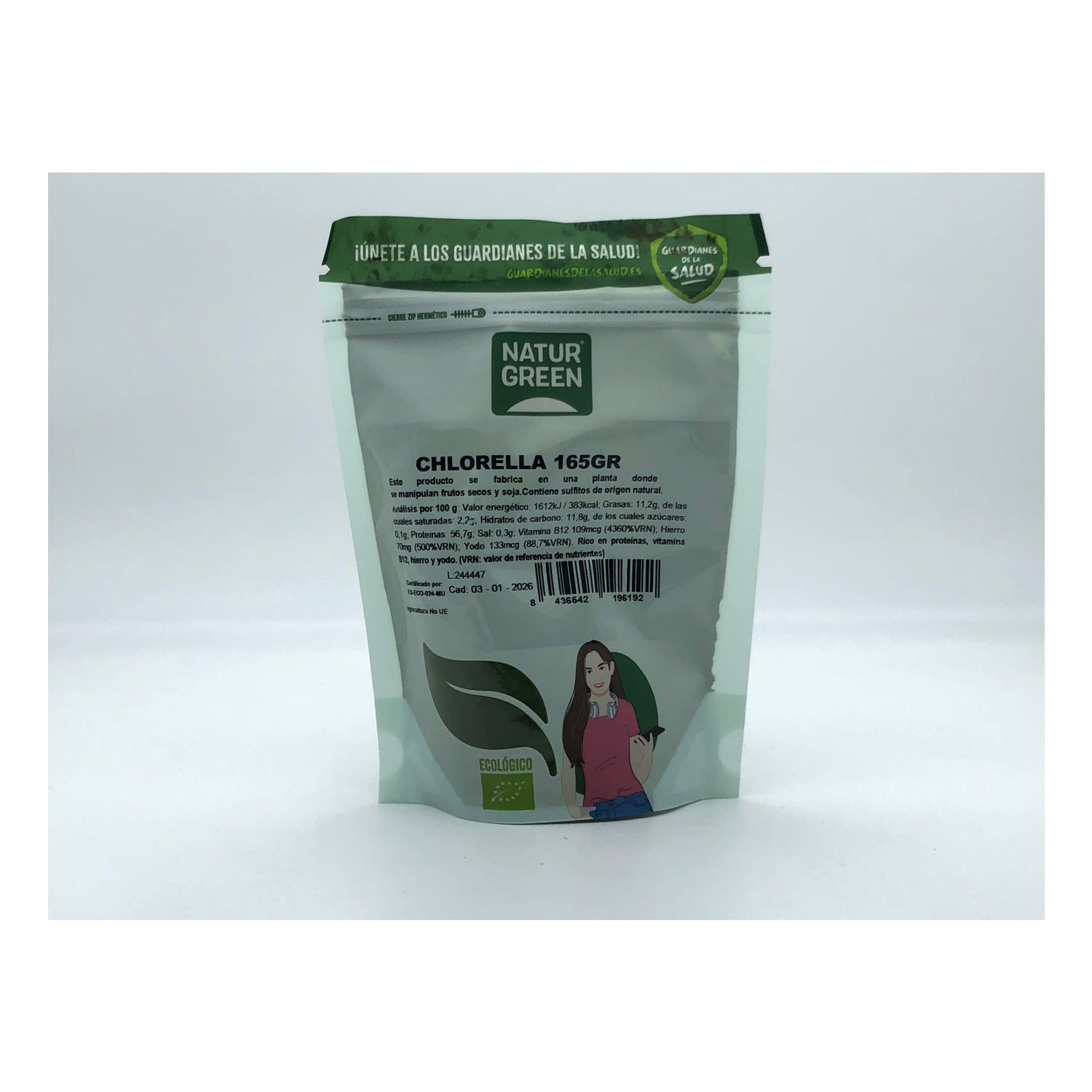 Poudre de chlorelle biologique (100%) issue de l'agriculture biologique à haute teneur en protéines, vitamine B12 et source de fer.